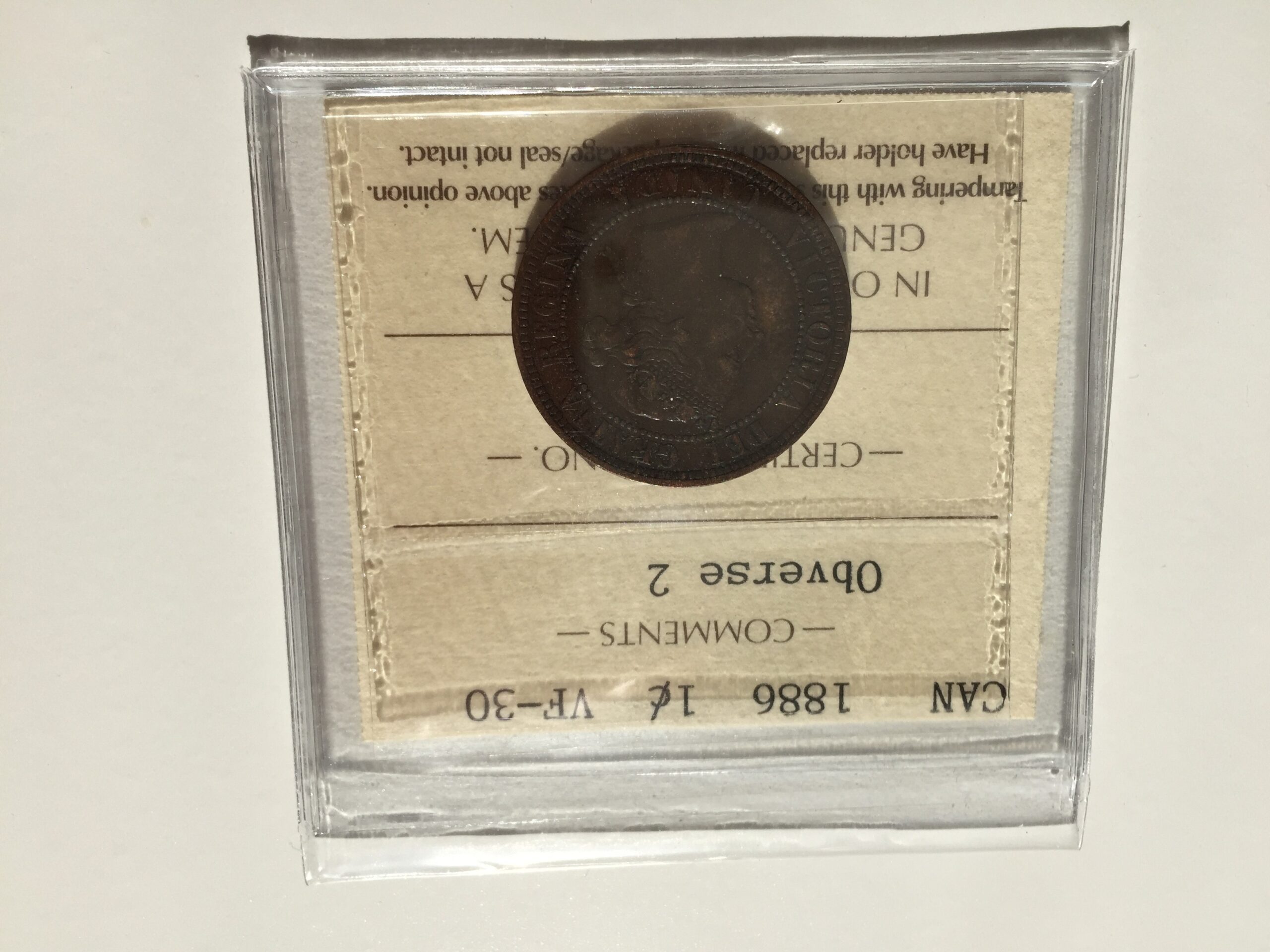 1886 Canada Large Cent ICCS Graded VF-30 OBV 2