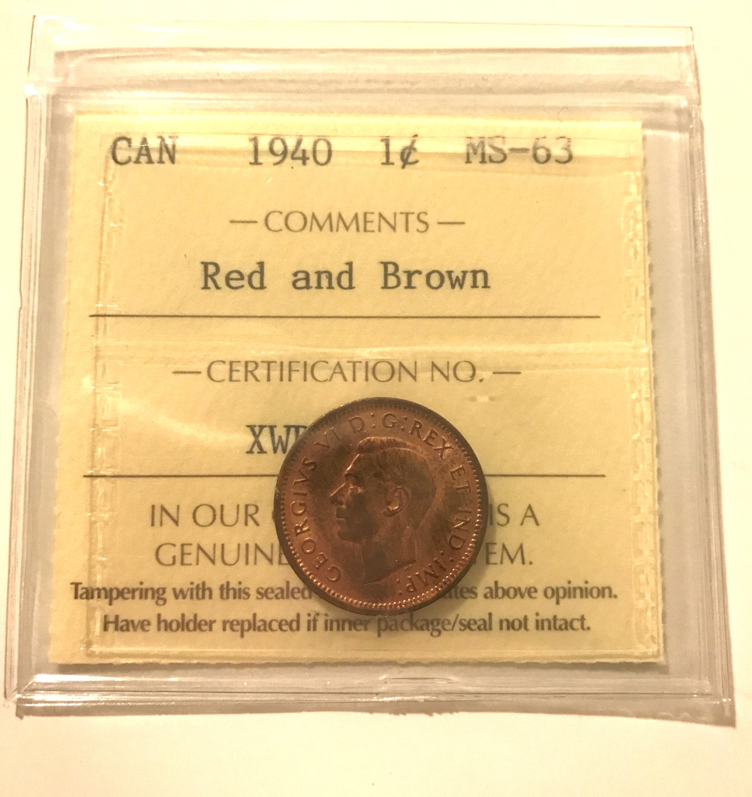 1940 Canada 1-Cent Penny ICCS Graded MS63