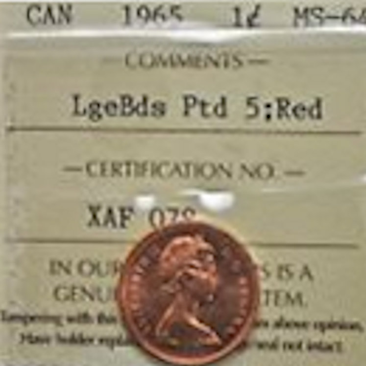 1965 OBVERSE VARIETIES : 1)SMALL BEADS A OF REGINA POINTS BETWEEN THE BEADS 2) LARGE BEADS A OF REGINA POINTS AT THE BEAD