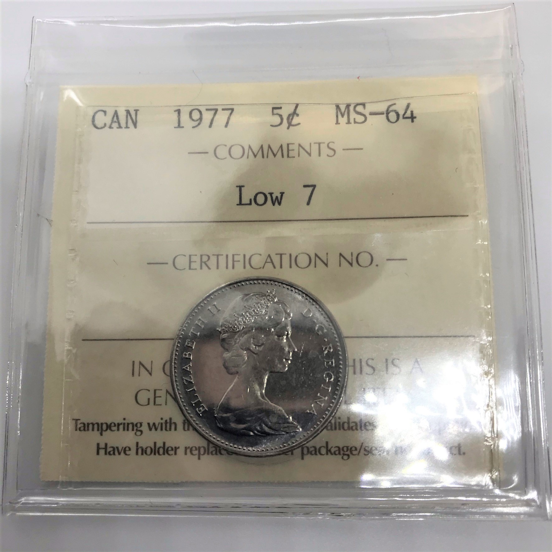 1977-Low 7 Canada 5-Cent ICCS MS-64
