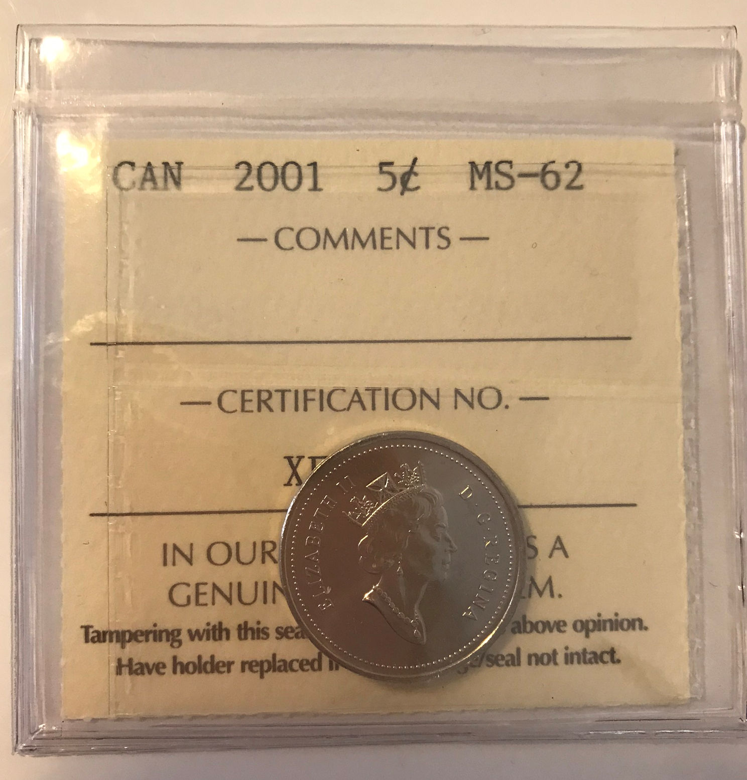 2001 Canada 5-cent ICCS MS62