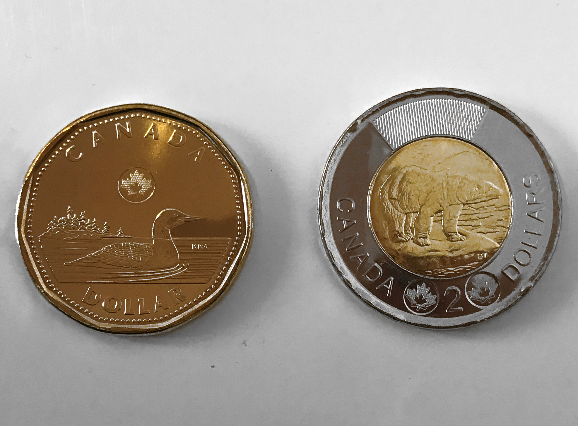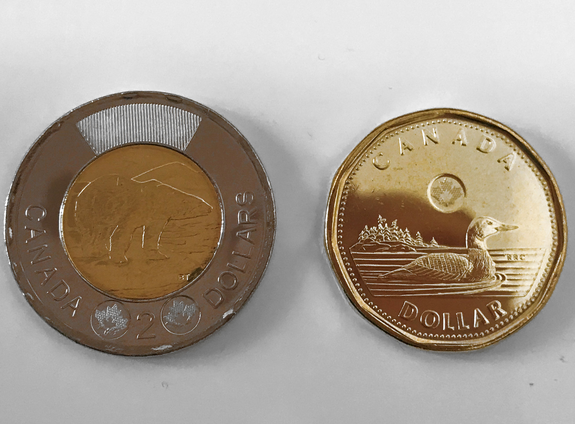 1x Loonie $1 and 1 x Toonie $2
