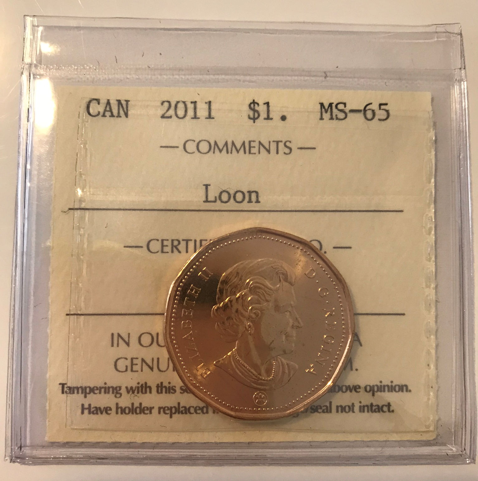 2011 Canada $1 Loon ICCS MS65